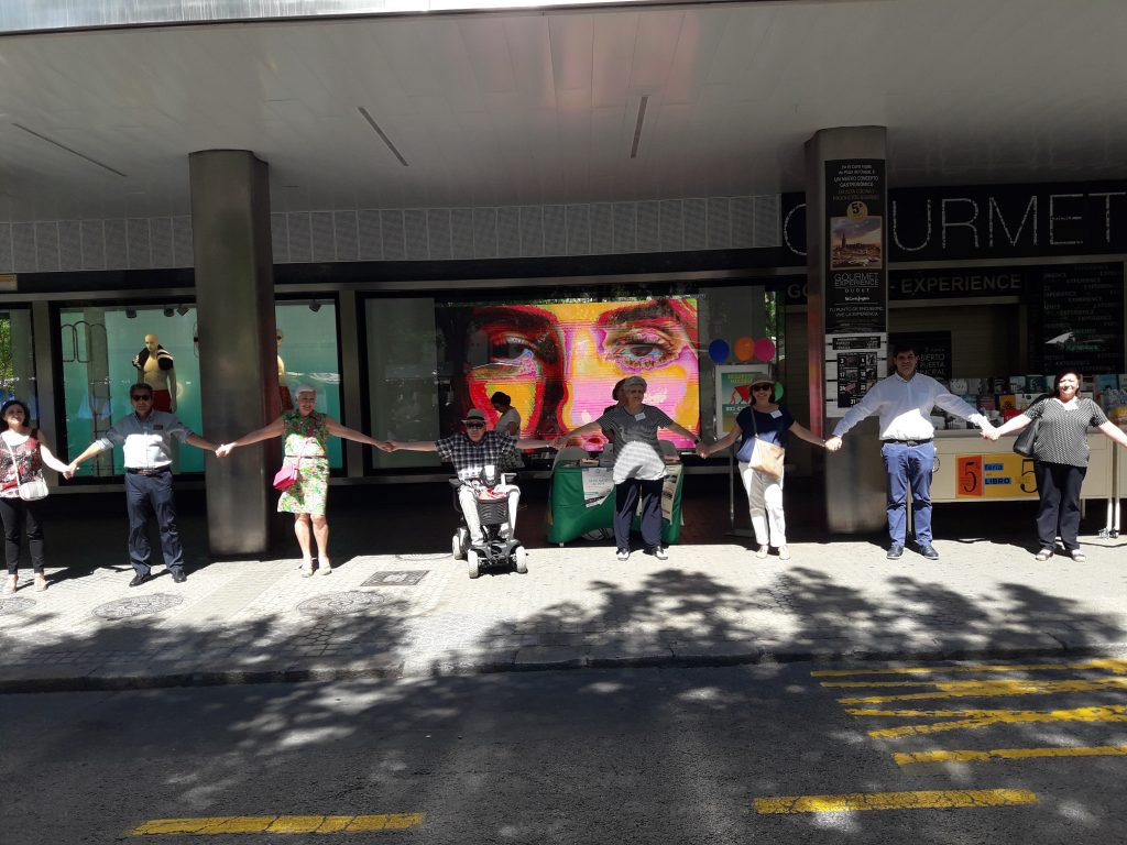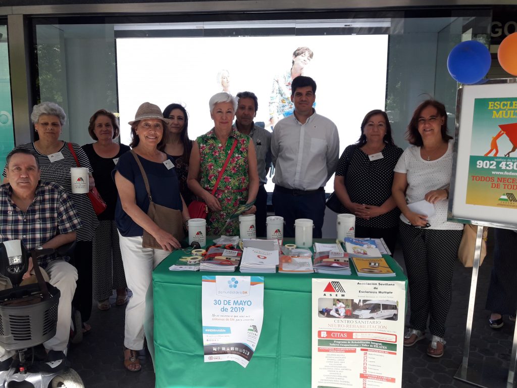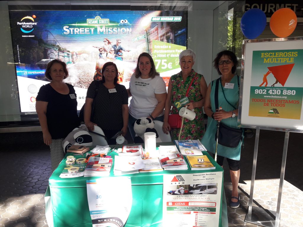 Miembros de la Unidad de Esclerosis Múltiple del Hospital Virgen Macarena, junto a nuestras voluntarias, en el Día Mundial de la Esclerosis Múltiple. De izquierda a derecha: Monica Borges y Elcira Dominguez ( neuropsicologas), Piedad y María Luisa (voluntarias) y a la derecha, Dr. Julio Dotor (neurólogo)