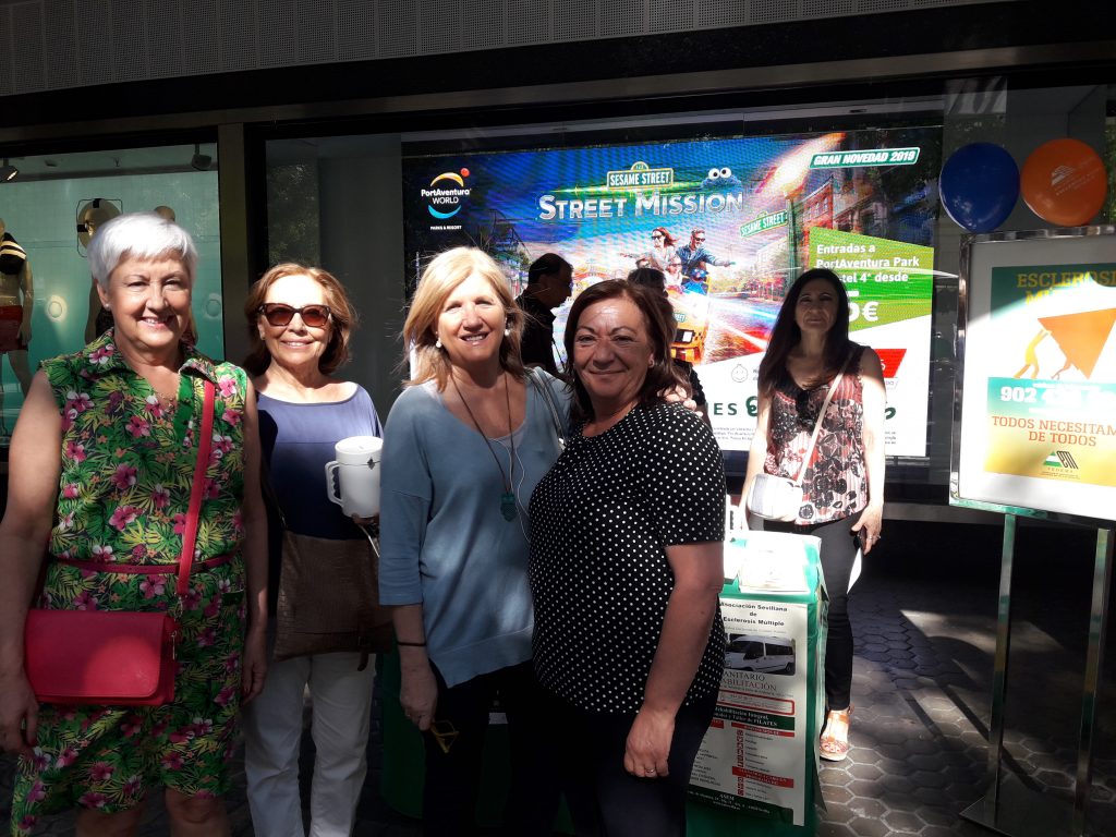 Miembros de la Unidad de Esclerosis Múltiple del Hospital Virgen Macarena, junto a nuestras voluntarias, en el Día Mundial de la Esclerosis Múltiple. De izquierda a derecha: Monica Borges y Elcira Dominguez ( neuropsicologas), Piedad y María Luisa (voluntarias) y a la derecha, Dr. Julio Dotor (neurólogo)