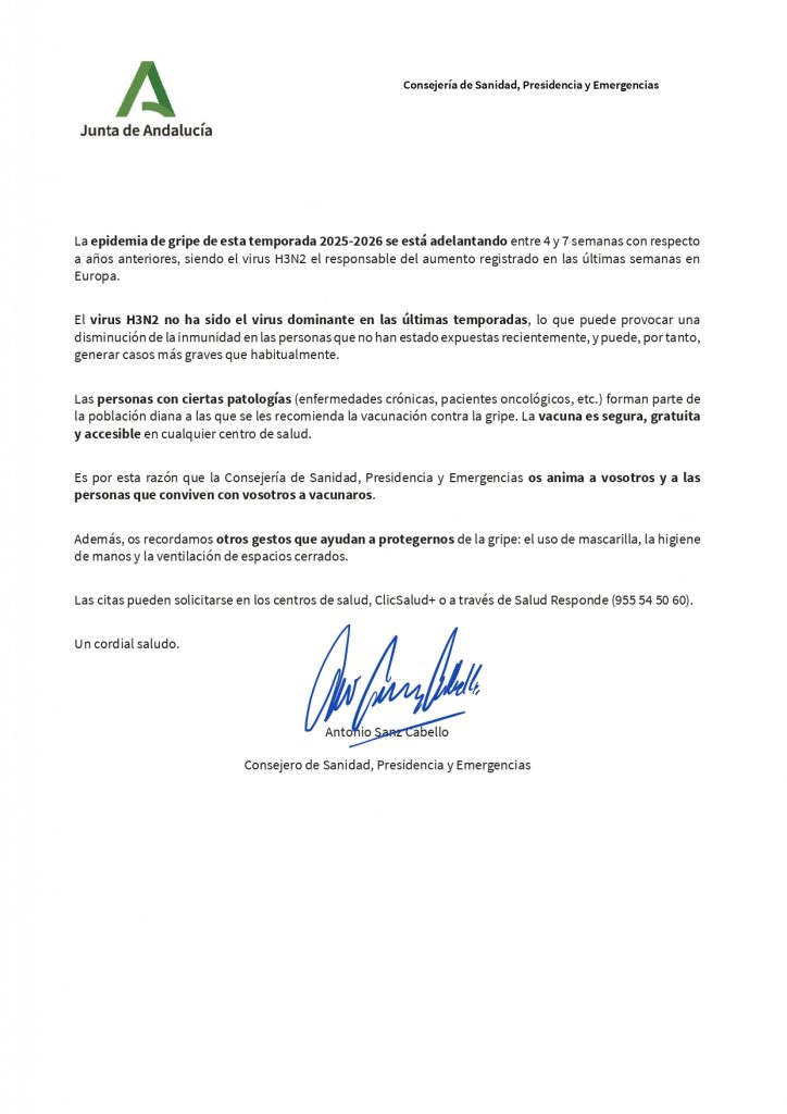 La vacuna de la gripe es segura, gratuita y accesible en cualquier centro de salud.