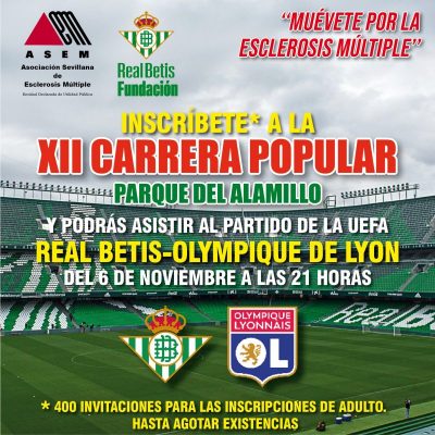 Además, con tu inscripción podrás conseguir una entrada para asistir al partido de la UEFA Real Betis – Olympique de Lyon, que se jugará el 6 de noviembre a las 21:00 h.