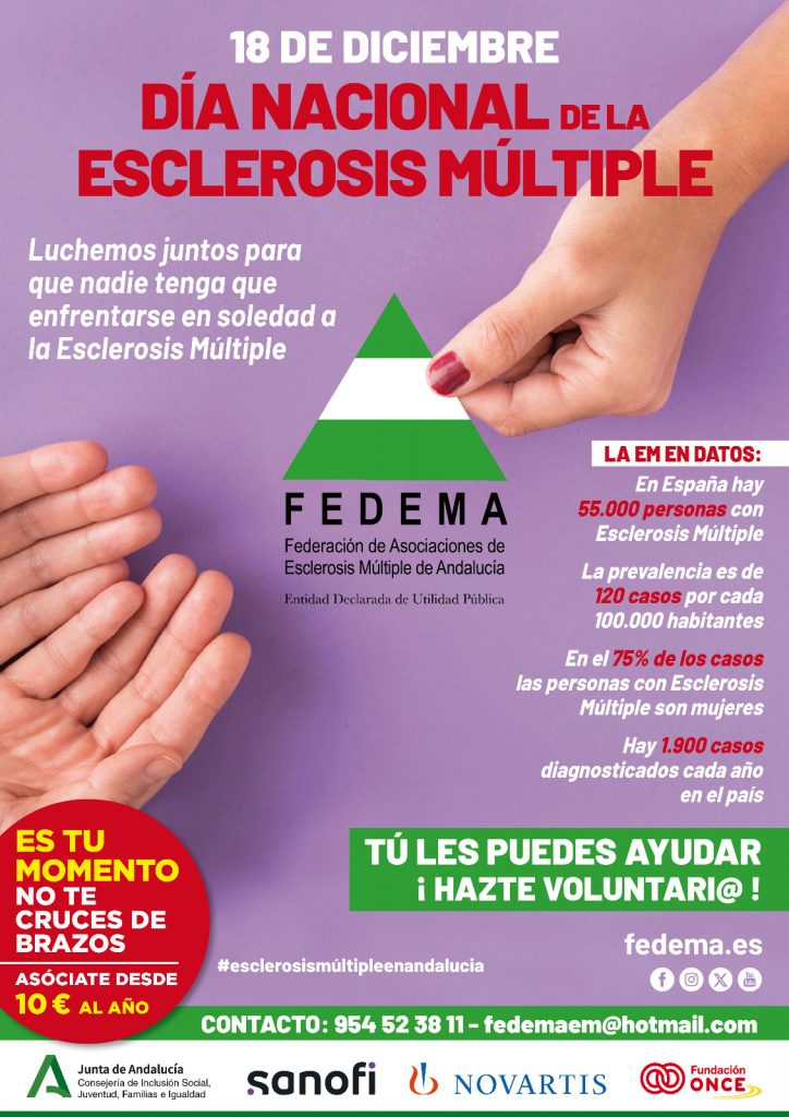 El día 18 de diciembre se celebra el Día Nacional de la Esclerosis Múltiple, por ese motivo colocaremos mesas informativas en los siguientes puntos: