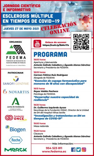 Jornada Científica e Informativa – ESCLEROSIS MÚLTIPLE EN TIEMPOS DE COVID-19, jueves 27 de mayo a las 18:00 h a través del canal de YouTube de FEDEMA: JORNADA CIENTÍTICA (EN DIRECTO)