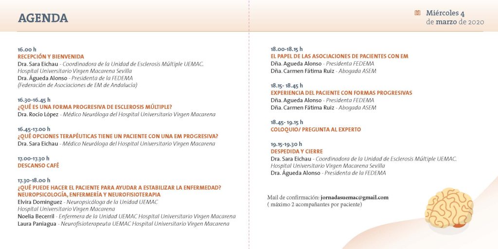Jornadas para pacientes con Esclerosis Múltiple, Hogar Virgen de los Reyes, sala polivalente, miércoles 4 de marzo de 2020 a las 16:00 h.