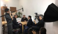 Paco Aguilar y Gonzalo Rivas durante el rodaje de «Las altas aceras». / Javier Polo