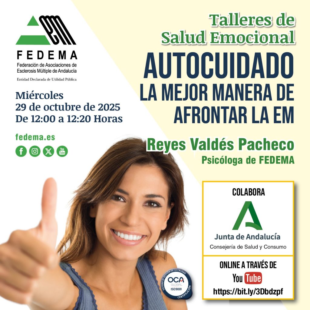 Cuidarse no es un lujo, es una necesidad. Te invitamos a este breve taller online AUTOCUIDADO, LA MEJOR MANERA DE AFRONTAR LA EM.