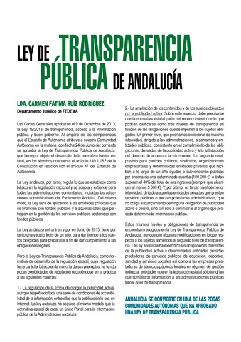 Ley transparencia pública de Andalucía (Lda. Carmen Fátima Ruíz Rodríguez – Departamento Jurídico de FEDEMA)