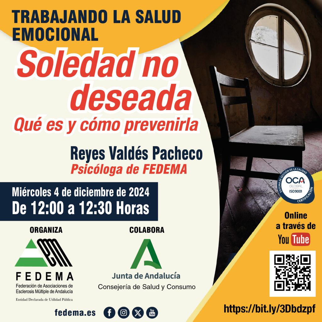 Continuamos Trabajando la Salud Emocional con FEDEMA, miércoles 4 de diciembre de 12:00 a 12:30 h. en directo, a través de su canal de YouTube.