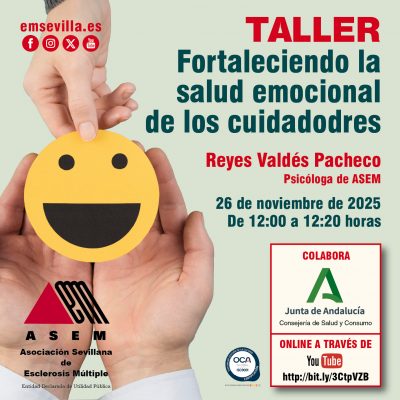 ¿Cuidas de otra persona? Entonces este espacio es para ti. 💚El próximo 26 de noviembre de 2025, de 12:00 a 12:20 h, te invitamos a seguir en directo nuestro taller online “Fortaleciendo la salud emocional de los cuidadores”, impartido por Reyes Valdés Pacheco, psicóloga de ASEM.
