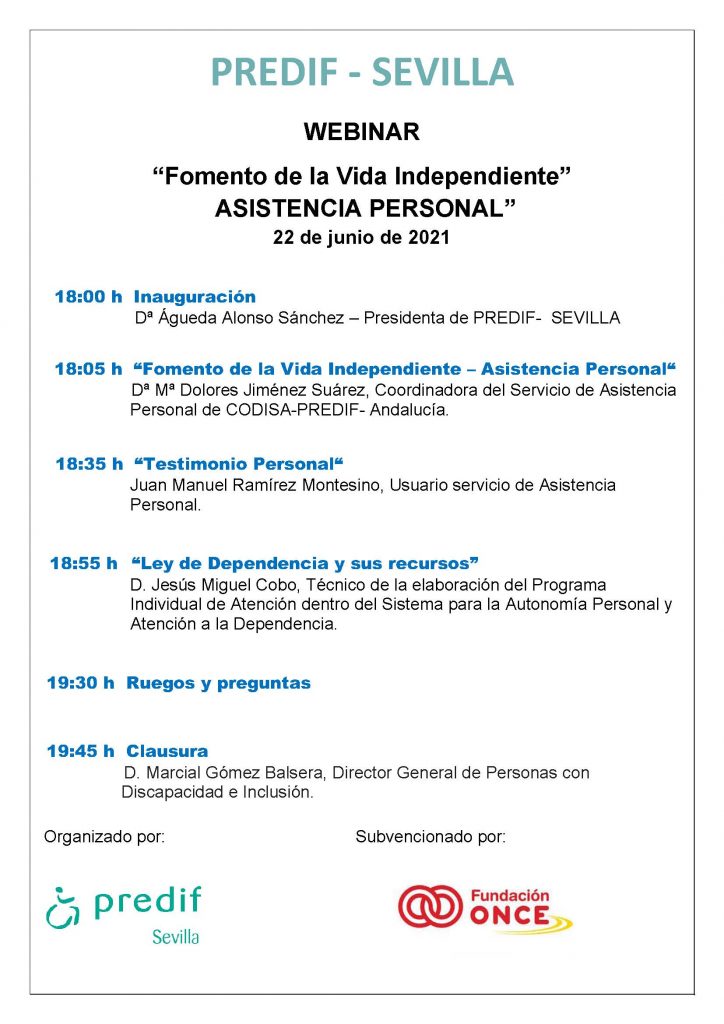 Si no pudiste ver el Webinar de Predif Sevilla sobre “Fomento de la Vida Independiente” – Asistencia Personal, en directo no te preocupes, aquí tienes el enlace de su canal de YouTube para verlo cuando quieras.